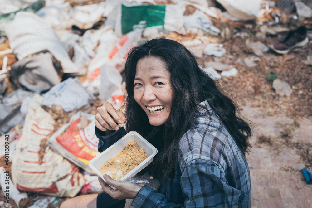 poor people,homeless or beggar begging for help sitting at dirty slum.concept for poverty hunger,human rights,donate and charity for underprivileged children in third world