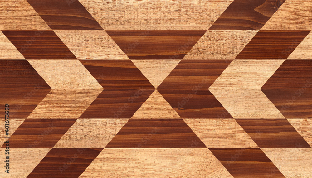 Seamless wooden wall with symmetry geometric pattern. Wooden boards texture.
