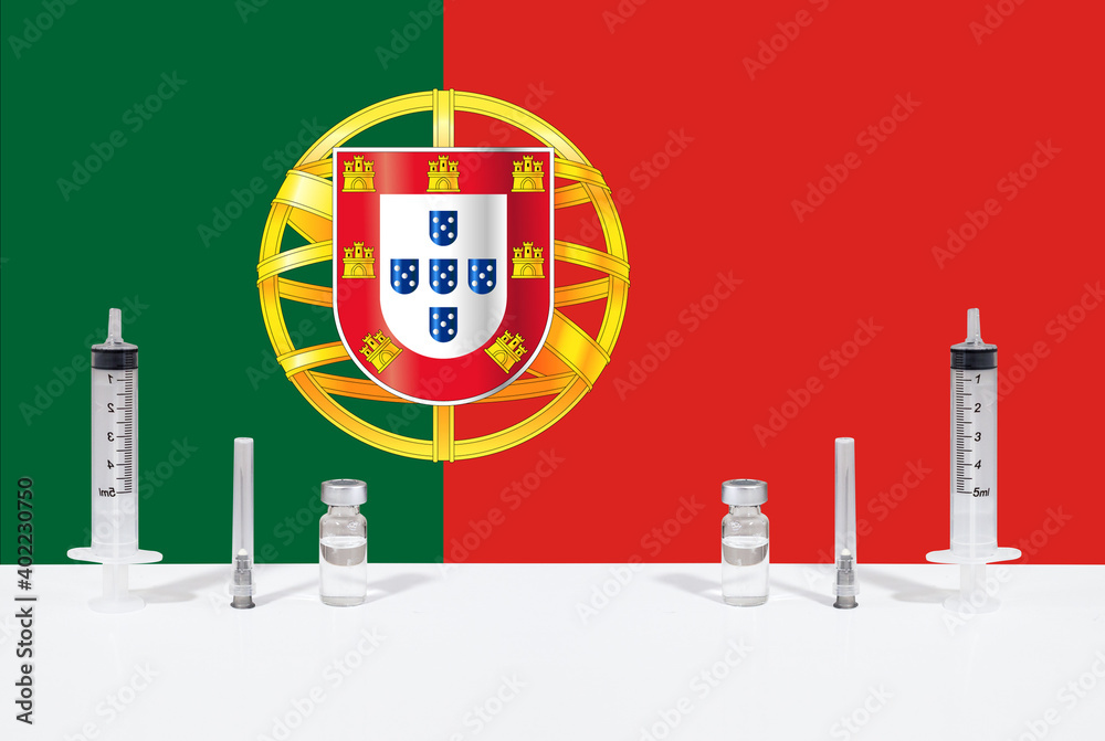 Flag of Portugal illustrating campaign for global vaccination against Covid-19. Epidemic Virus