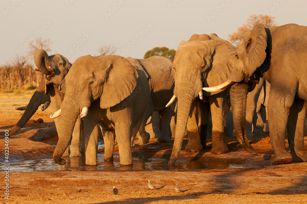 Elephants drink at a waterhole.