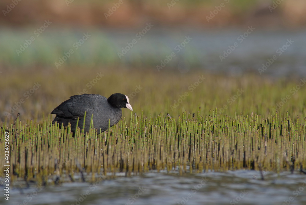 Blaesshuhn ( Fulica atra ) bei der Brut.