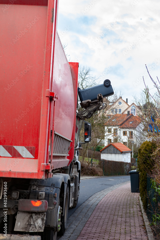Seitenlader greift die Tonne - automatisierte Müllabfuhr
