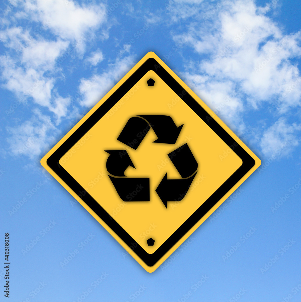 Recycle symbol sign on beautiful sky background.
