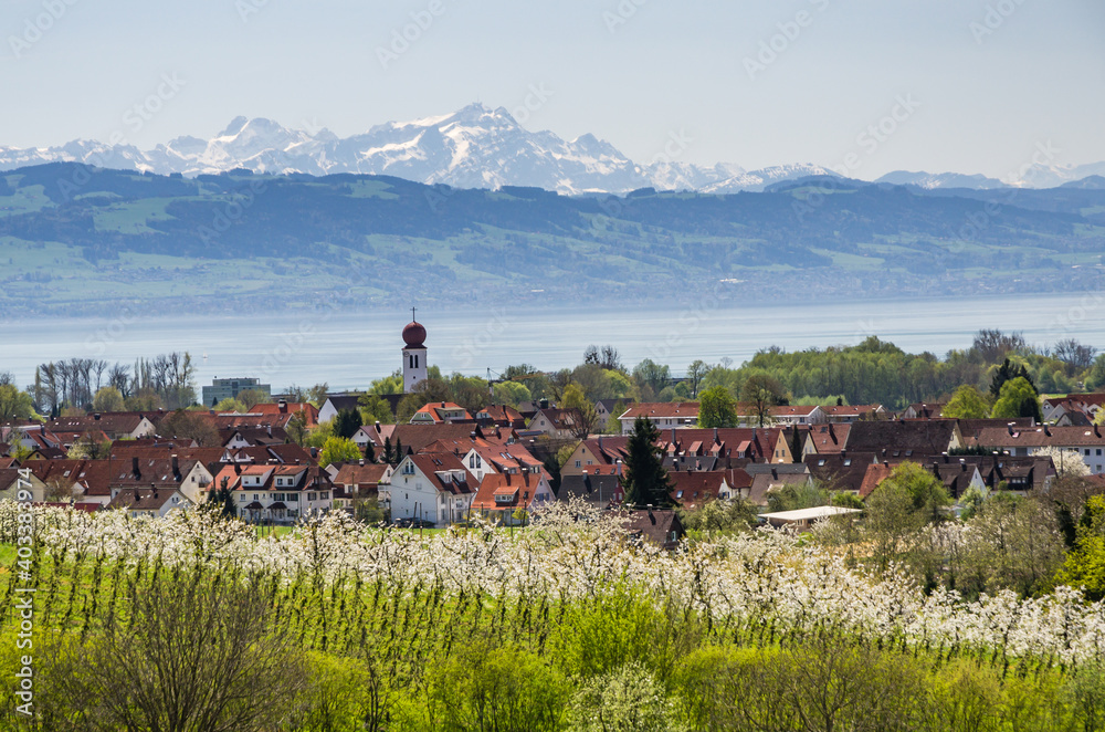 Blick auf Kressbronn, Bodensee und Säntis bei Föhnwetter, Baden-Württemberg, Deutschland