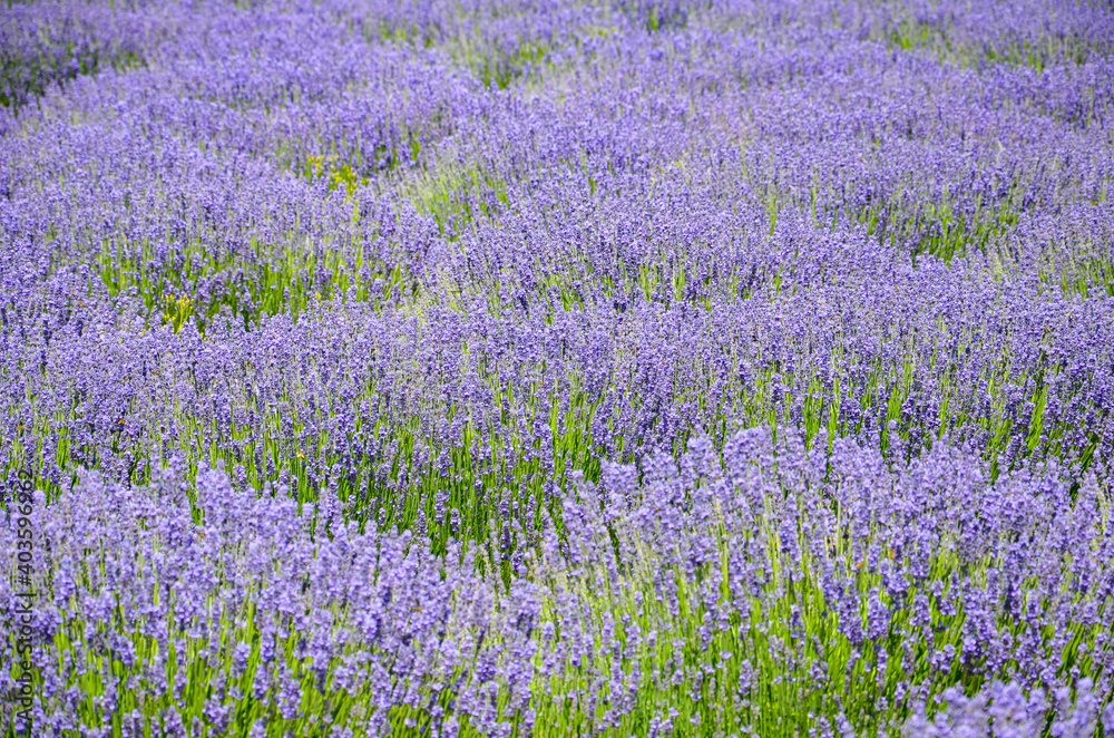Scented purple lavender field background, closeup of flowers, Provence in summer