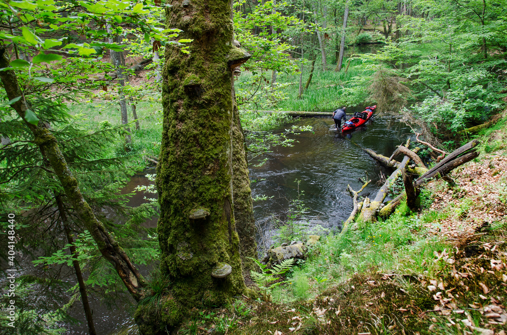 Samotny spływ kajakowy rzeką Brdą w północnej Polsce