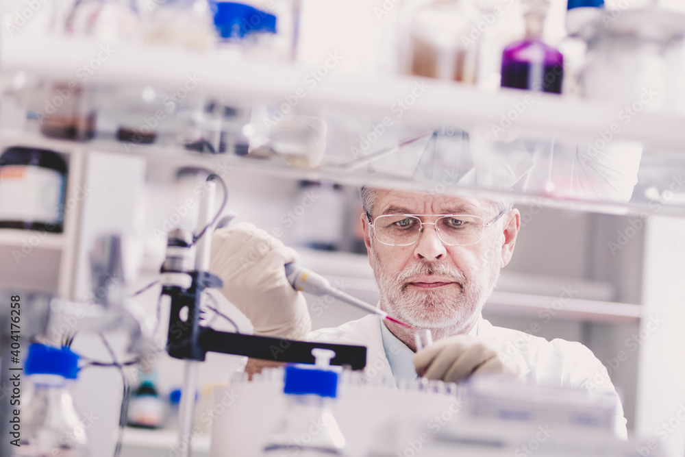 Life scientist researching in laboratory. Life sciences study living organisms on the level of microorganisms, viruses, human, animal and plant cells, genes, DNA...
