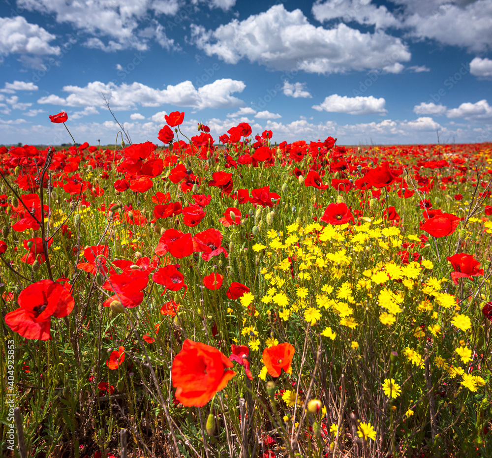 Nice colorful poppy field in spring