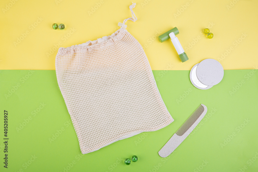 Backpack of mesh in a set with paint, mirror and hygienic lipstick