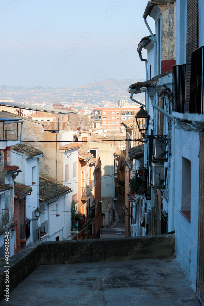 cosy beautiful narrow street in old spanish town Xativa, province of Valencia