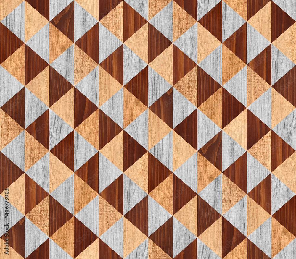Seamless wooden background. Colorful decorative wooden wall panel with triangle pattern. Wood texture.