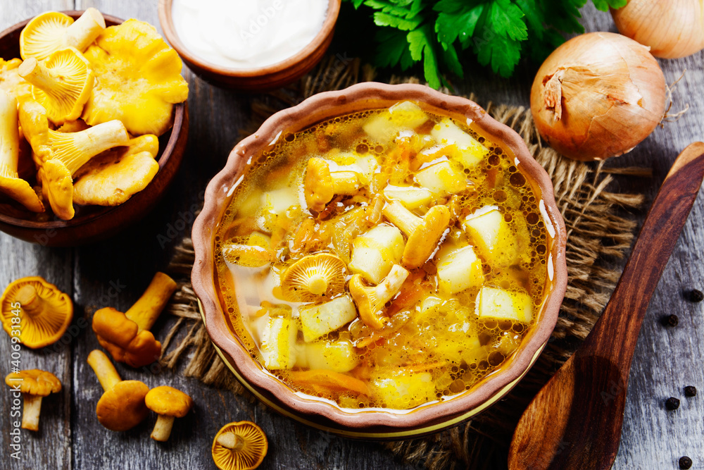 Soup with chanterelles
