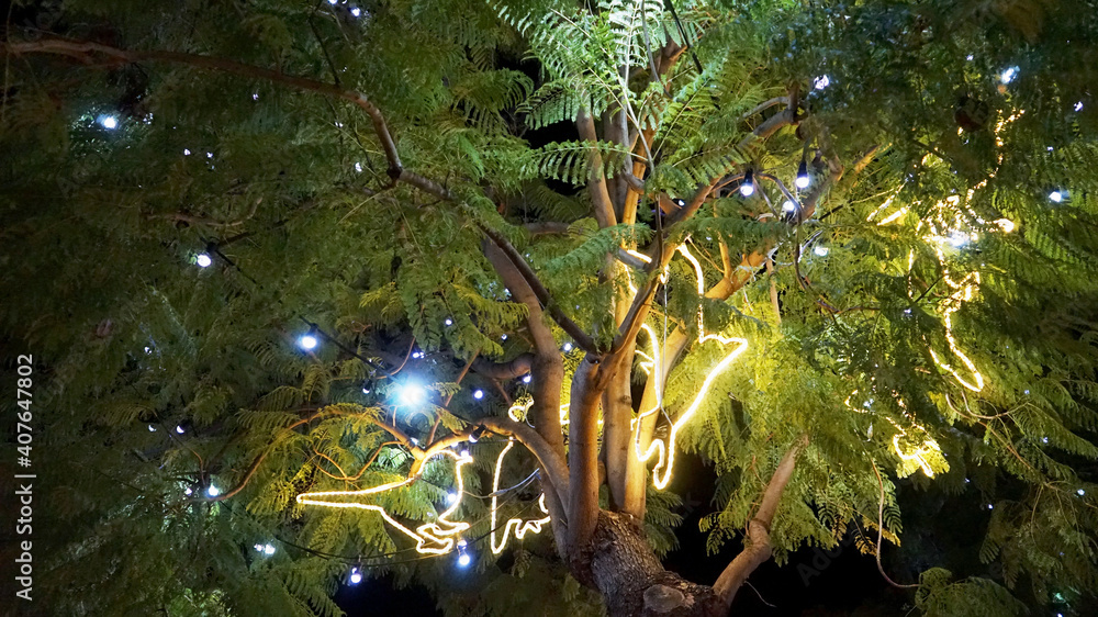 Weihnachtsbeleuchtung am Plaza de la Merced, Malaga, Spaniern