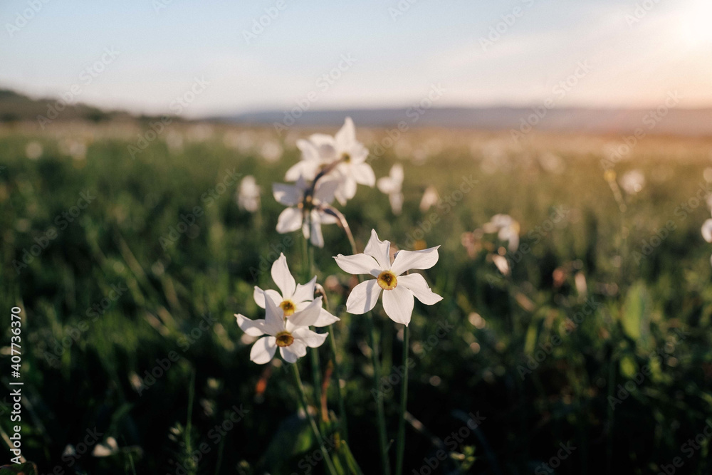 Beautiful shot of white narcissus in the filed
