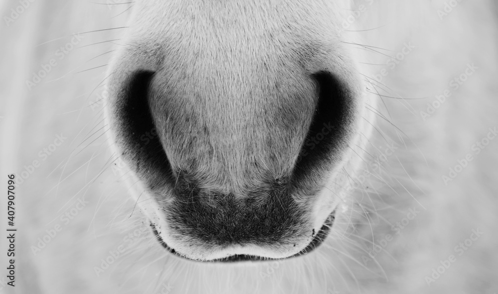 Breath - closeup of horse nostrils, black and white Photo