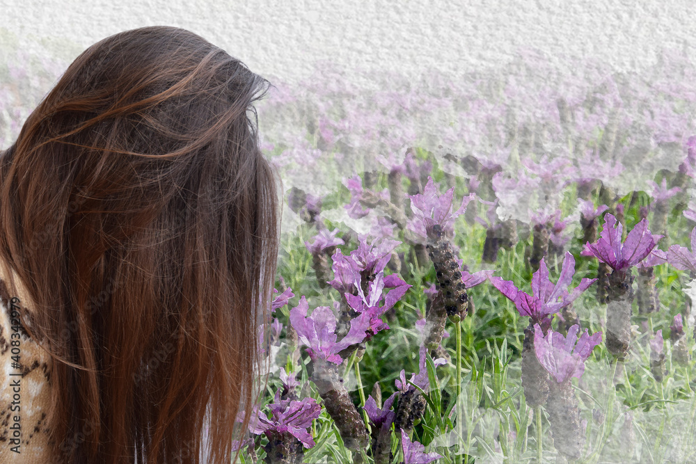 Efecto de acuarela creado con filtro para ambientar la escena con flores diluidas.