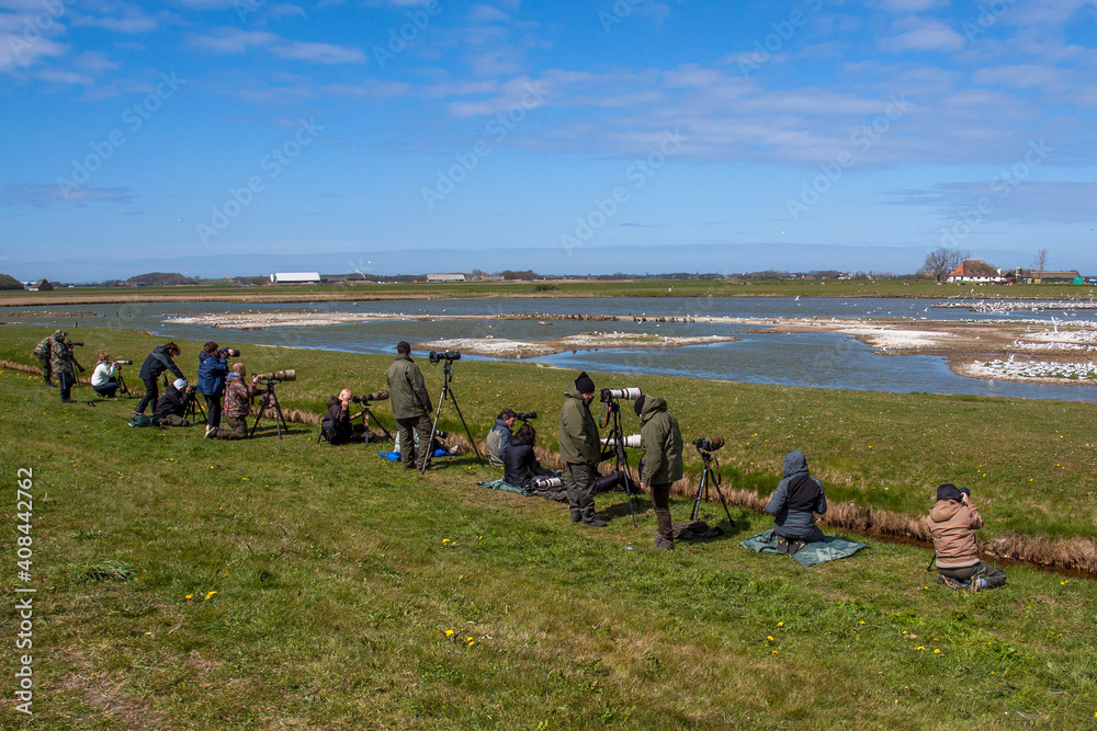 Naturfotografen beim Vogelschutzgebiet Ottersaat, Insel Texel, Niederlande