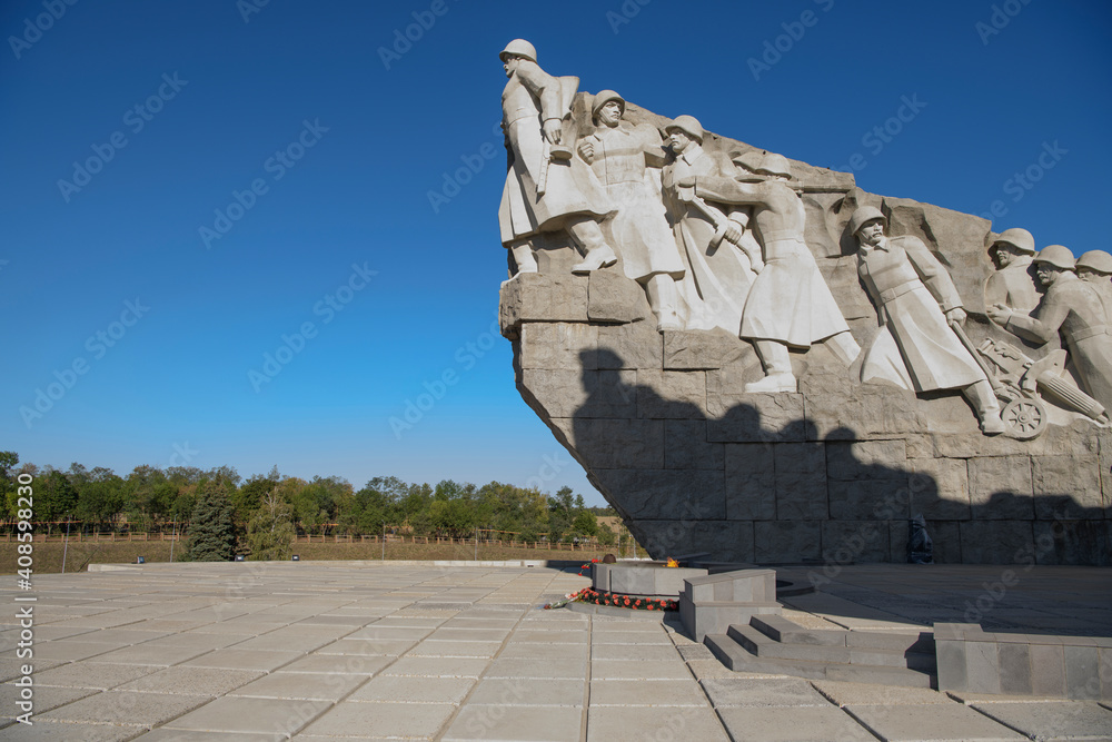 Eternal flame on the graves of 800,000 soldiers killed by the German fascists in the Sambek Heights. Rostov-on-Don, Russia