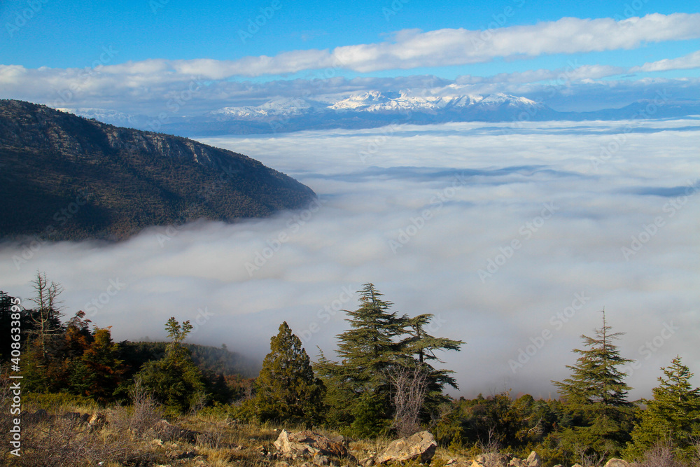 Clouds over the mountains, mist over the mountains, fog over the mountains, sky with clouds