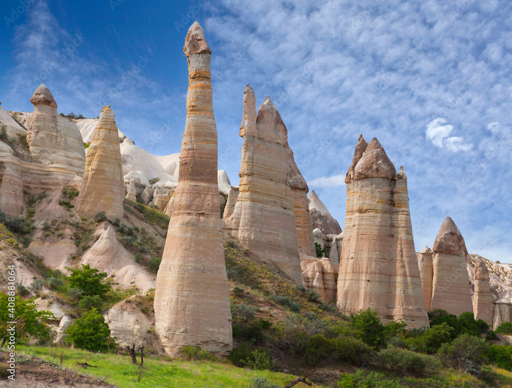 Famous Love Valley in Cappadocia, Anatolia, Turkey. Goreme National Park.