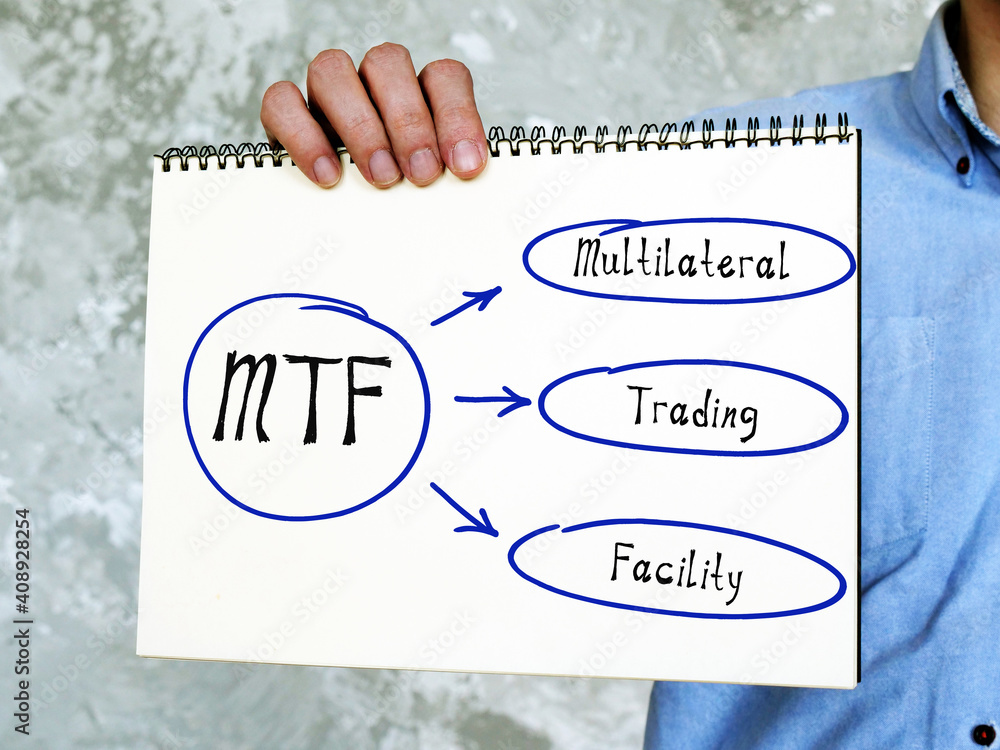 MTF Multilateral Trading Facility on Concept photo. Young Man Holding a notepad
