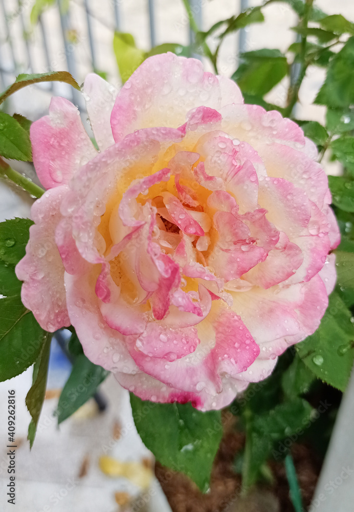 White and pink roses in the garden