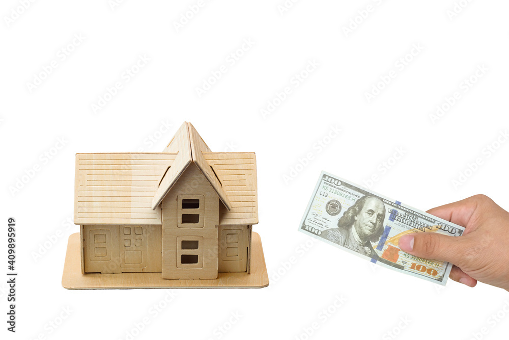 Home / mortgage loan or reverse mortgage concept depicts the financing activities between lender and borrower on white background