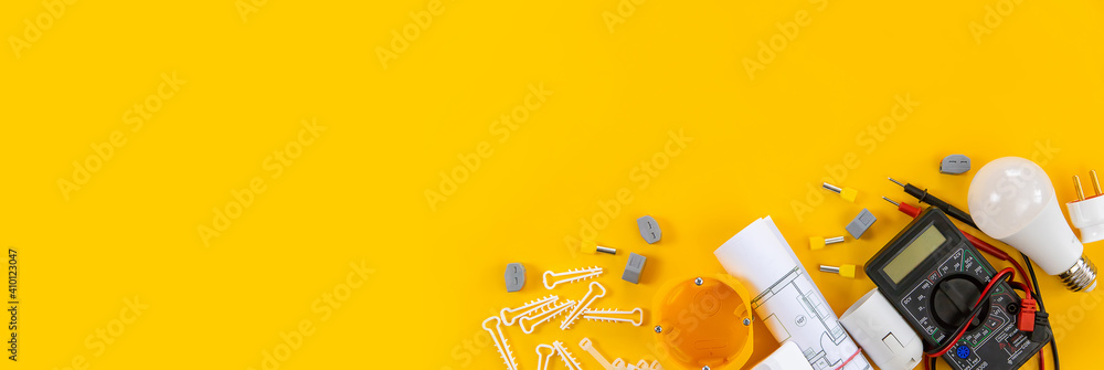 electrical tools for repairing electricians in the house. Selective focus.