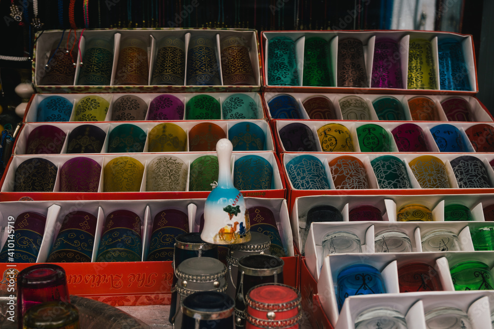 Moroccan Style Tea Glasses Countless Colours, Essaouira, Morocco.