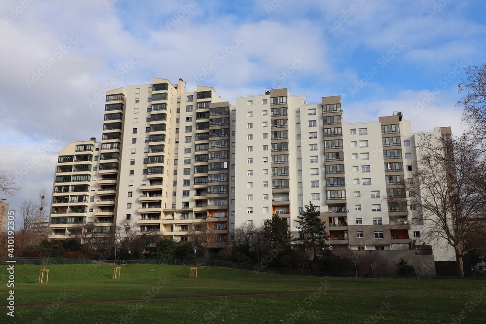Grand immeuble d'habitation des années 1960 et 1970 dans le quartier du Tonkin, ville de Villeurbanne, département du Rhône, France