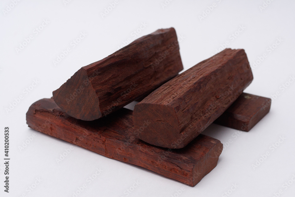 Sandalwood logs on white background