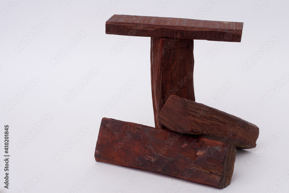 Sandalwood logs on white background