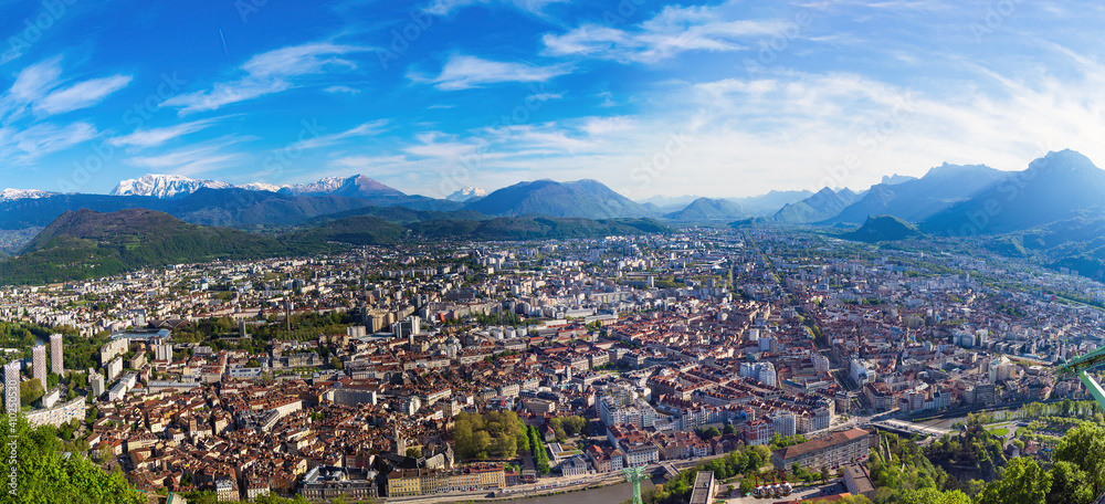 Grenoble, city panorama, mesmerizing views of the city and the Alps from the observation deck, France, spring.