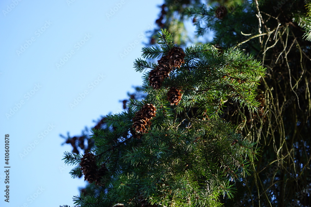 pinecones next to a hiking trail in Marburg at the Hebronberg, Hessen, Germany, February