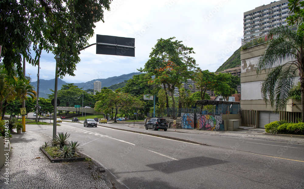 Rodrigo de Freitas Lagoon. Avenue Henrique Dodsworth. Moving transport and citizen