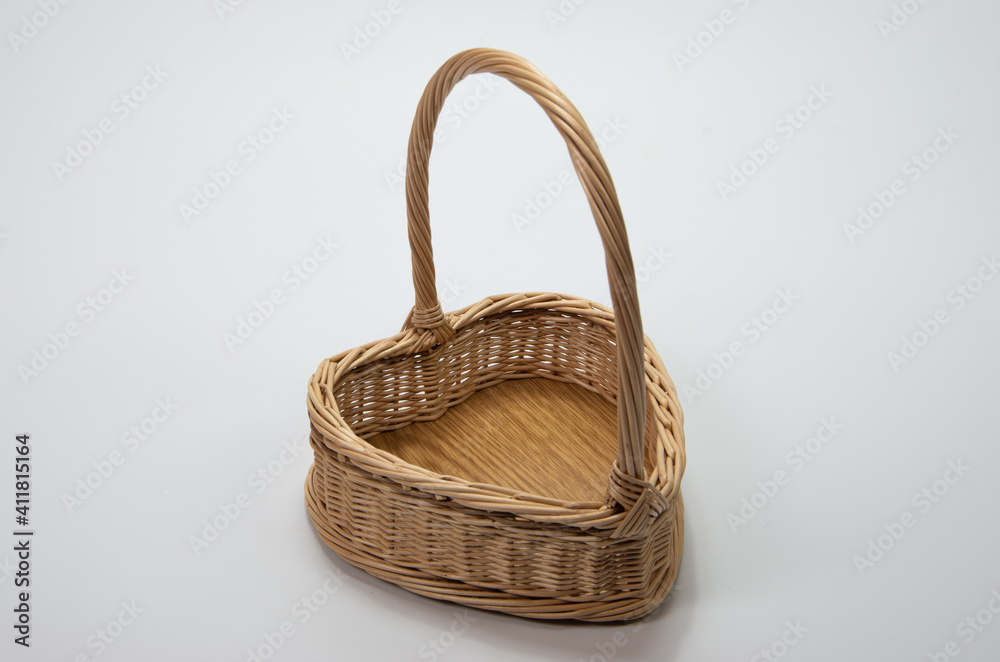 Wicker basket with handle. Heart shapes. Valentine's Day