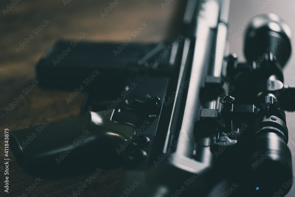 ライフルスコープを付けた軍用自動小銃