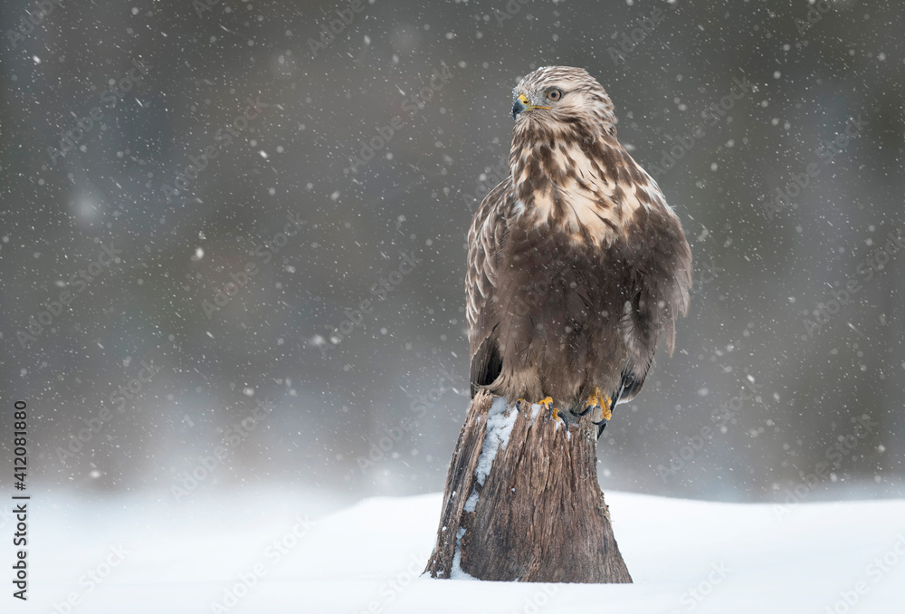 Rough-legged buzzard ( Buteo lagopus ) in winter scenery
