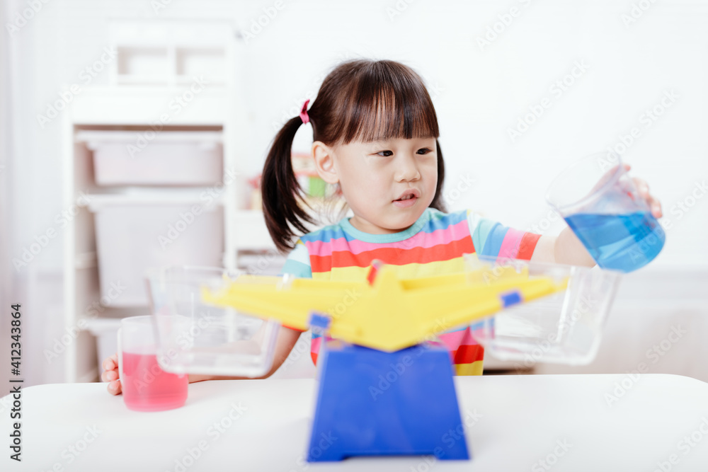 young girl play balance toy for homeschooling