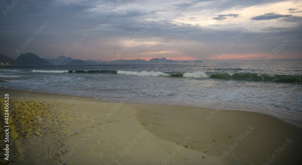 Sunrise on the beach of Copacabana.Rio de Janeiro, March 2020