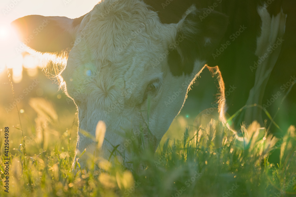 Hereford cow eating grass