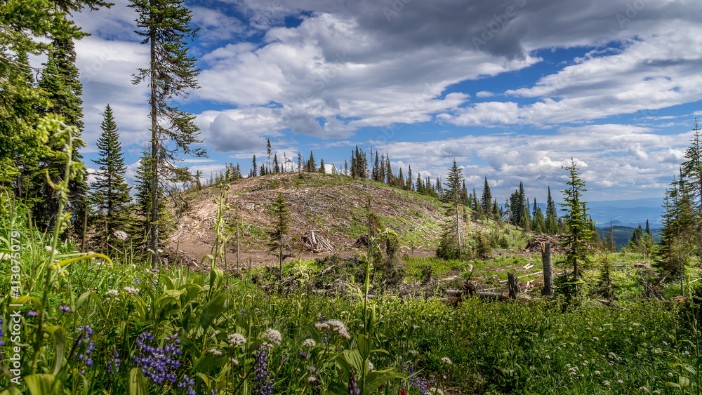 Industrial Clear Cut Logging in the Shuswap Highlands of British Columbia, Canada