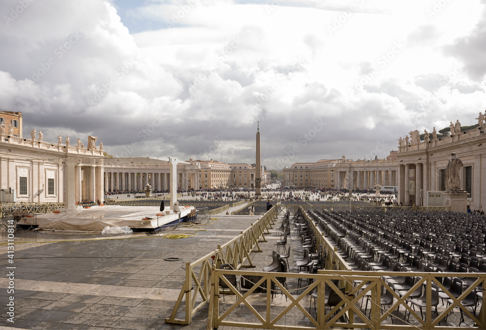 Tourists visiting St. Peter's Square. Workers cleaned area