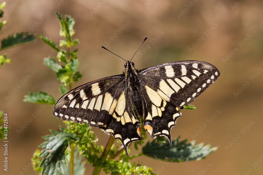 Papilio machaon, World swallowtail, butterfly with yellow and black open wings