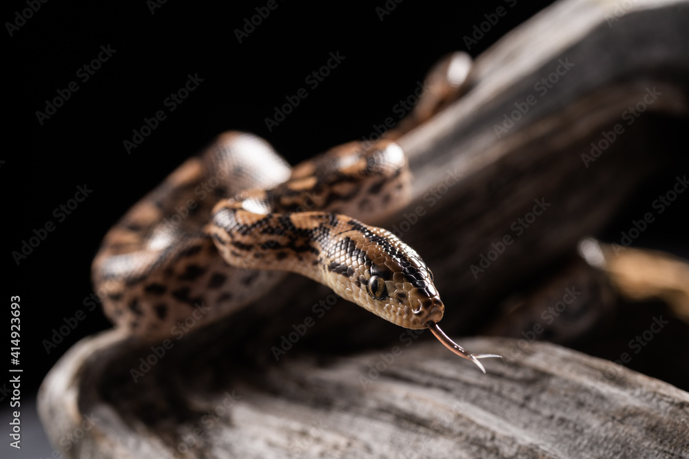 A close up of the venomous snake (Agkistrodon saxatilis) on dry tree