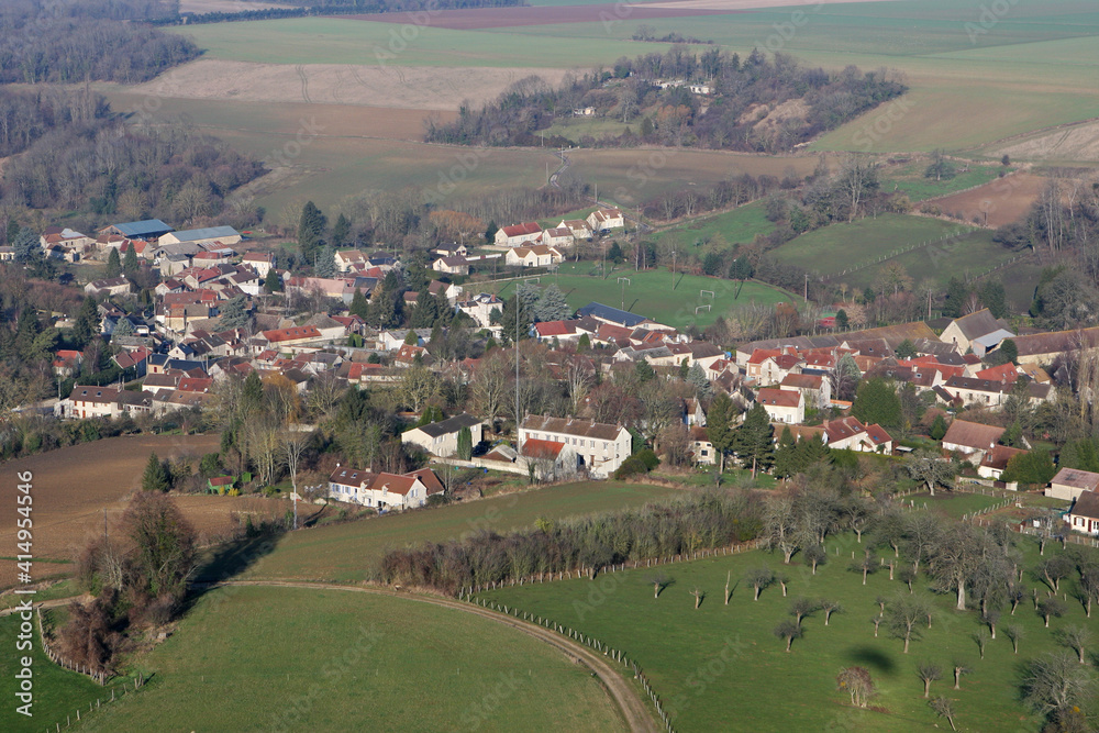 Aerial view of Chaussy en vexin, in Ile-de-France region