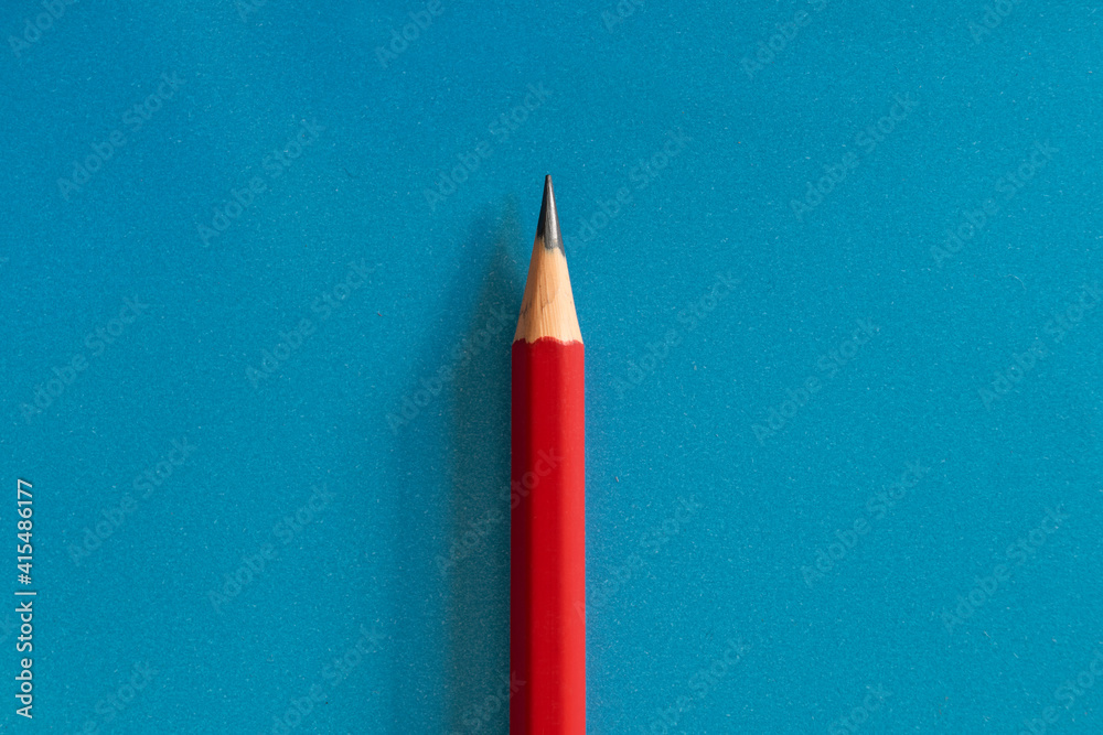 Lápiz de madera rojo sobre fondo celeste. Textura