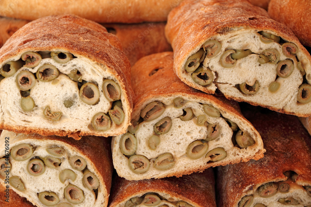 bread with green olives, Italy