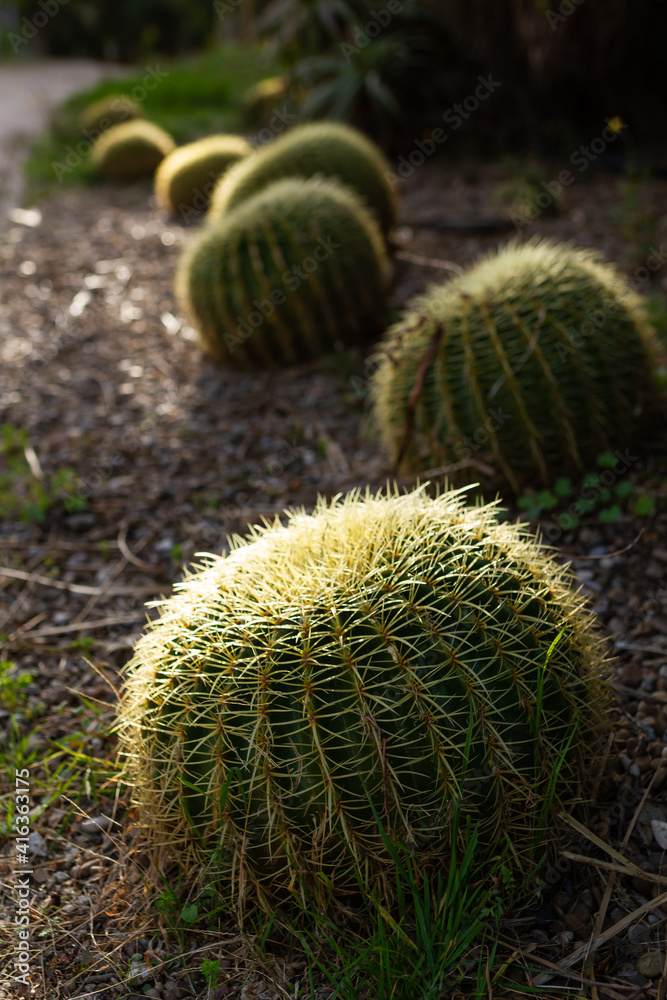 Echinocactus grusonii, Golden barrel cactus, round cactus, flora concept