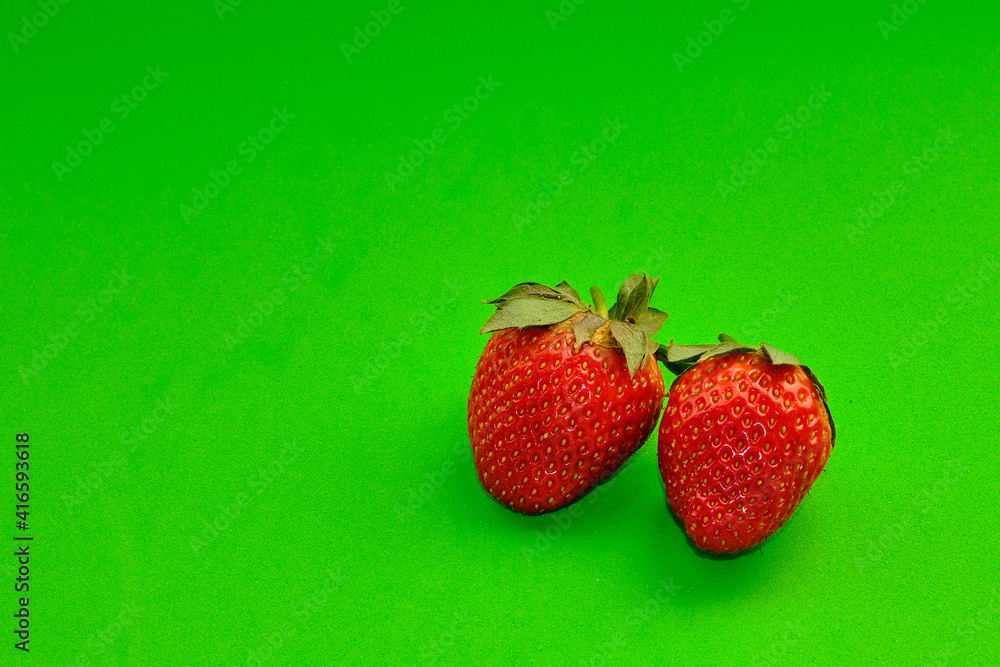 Strawberries on a green background.